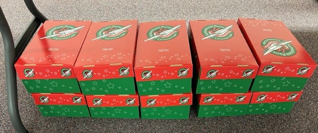 We have one more Sunday to pack our Shoe boxes, let’s see how many they can pack. They’re pretty excited about beating the original goal.